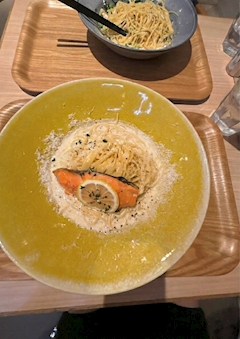こんばんは🌛 ののです🍥 昨日のお昼ごはん🍴 カルボナーラ専門店へ🥚🥓 サーモンとレモンのパスタにしたよ🍋 他のお店だとなかなか見かけないメニューがたくさん😮 どのメニューもおいしそうだった😌 🤍 明日出勤です🥂 おやすみなさい🥱 のの🍥