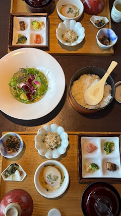 こんばんは🌛 ののです🍥 この前お休みいただいて 館山に旅行へ👜 朝ごはんの写真🍚 この他に豆腐と焼き魚があった🐟 どれもおいしかった〜😌 お刺身は塩で食べても美味しいんだね🧂 鯛と鰹が好きなんだ〜🐟 一緒にごはん行きましょう〜😌🎶 のの🍥