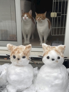 こんばんは🌙 すいです️🩵 昨日はお庭に雪が沢山積もってたから 妹と一緒に雪遊びしたよ❄️ 土で色付けして🍂 飼ってる猫たち うに とろ の雪だるまと🐈 ( 並び順が逆🥲 ) アナ雪に出てくる雪だるまちゃん達を❄️ 気づいたら2.3時間くらい遊んでた… その後はゆっくりこたつに入りました💤 今日も元気に出勤してます🌟 すいでした